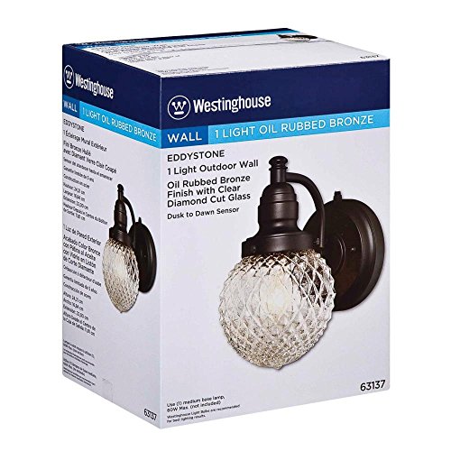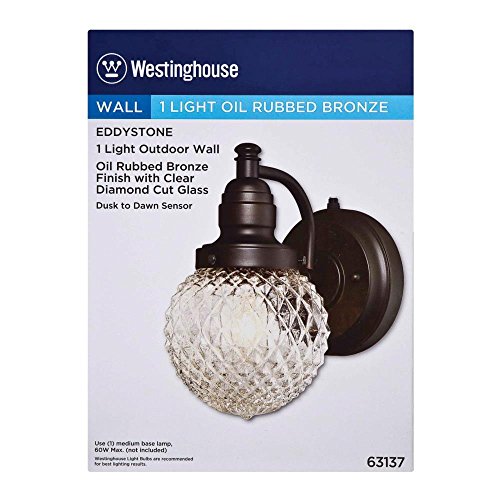 Westinghouse 6313700 Eddystone One-Light Outdoor Wall Fixture with Dusk to Dawn Sensor with with Clear Diamond Cut Glass, Oil Rubbed Bronze