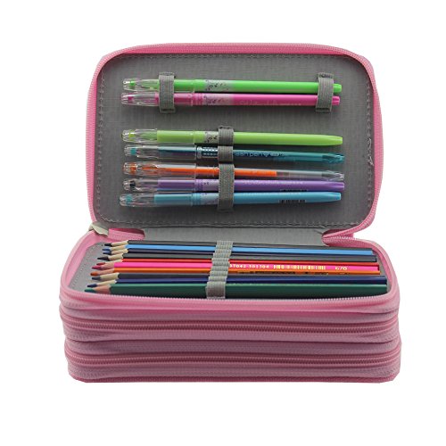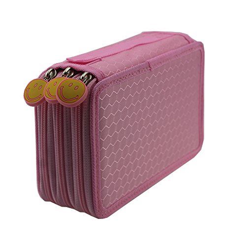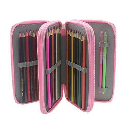 Pshine Large 48 Slots Colored Pencil holder- Pencil Case-Pencil bag-Pencil pouch-Pencil wrap with Zipper (Pink)