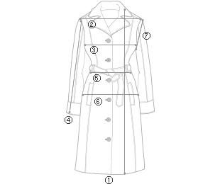 サイズ ①総長 ②肩 ③胸 ④小売 ⑥アームホール ベルト