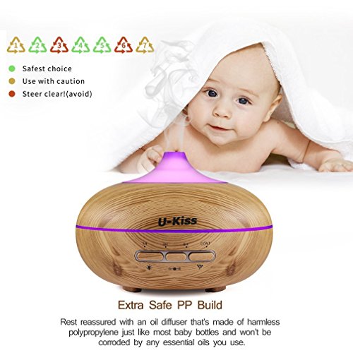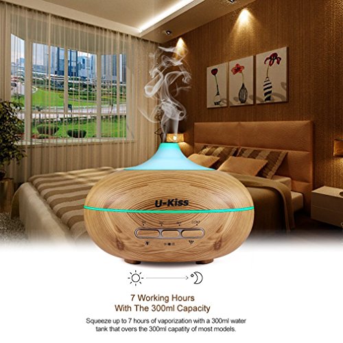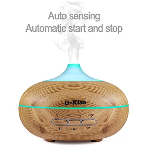 U-KISS 300ml Aromatherapy Essential Oil Diffuser Cool Mist Humidifier Waterless Auto Shut-off with 4 Timers, Sensor Button and 7 LED Color Changing Lights