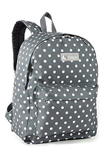Product Description Everest signature and best-selling backpacks range from classic and timeless designs to fresh and trendy designs. Classic and timeless backpack with a spacious main compartment, easy access front pocket and key ring. Available in a series of fun, stylish patterns to fit your personal style. High quality 600D Polyester, professionally weaved seams offer long-lasting use. Dimensions 16.5 x 12.5 x 6.5 inch, capacity 1340 cu in / 22 L, weight 12.0 oz. / 0.3 kg. Life is a journey to the peak of the highest mountain - This has been our goal and vision since 1982 in creating functional and stylish bags for our daily adventures. We believe bags are an extension of our bodies carrying the many essential items that we need throughout the day. And driven to continue our journey to the peak as our name suggests, we have thoughtfully designed items that feature timeless silhouettes and modern conveniences while maintaining fine regard for detail and quality. Drawing upon more than 30 years of experience, we will continue to craft inspirational and innovative bags to be part of your life's journey. 0