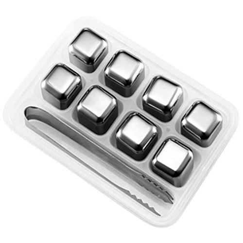 -. Feature : SET INCLUDES - 8 x Fast-Cooling Non-Diluting Stainless Steel Reusable Whiskey Stones,1 x Nonslip Rubber-End Tongs, and 1 x Plastic Storage Ice Cube Tray with Lid. / By gently stirring your drink with the included chilling stick, your drink will cool even faster! / Made of high quality food grade stainless steel and possess FDA approval for food and drink / Allowing for longer cooling time, they're not only to chill a warm drink, but also to hold the temperature of an already chilled drink / Unique gift for spirit drinkers; best chilling ice cubes for whiskey in the market;