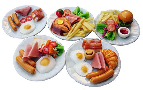 -. Feature : 5 Assorted Breakfast Sausage Dollhouse Miniature Food / Made of High Quality Clay / Scale 1:12 / Product Of Thailand / Ceramic Plates Diameter size 1.3 Inch's