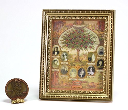 -. Feature : Dollhouse Miniature 1:12 Scale Artwork / 1:12 Scale Artwork Victorian Family Tree in a Gold Frame