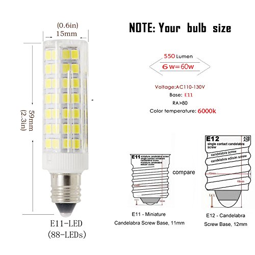 E11 Candelabra Base, high brightness 2835 SMD LED as light source, (New-88leds)6W 500-550lm, Omni-directional 360 degree beam angle;
