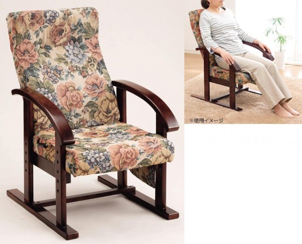 | 立ち座りの動作が楽にでき、ゆったりと座れる椅子です。レバー式14段階リクライニング、座面高4段階調整可能です。収納ポケット付。 |