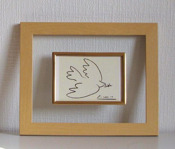 ピカソが平和への願いを込めて描いた作品を、美しい透明感のガラスフレームにセットしました。シンプルでさりげない雰囲気の中にもアート感が漂う一品です。ハガキサイズ(150×105mm)対応で、PCからプリントした写真紙などにもご使用いただけます。 |