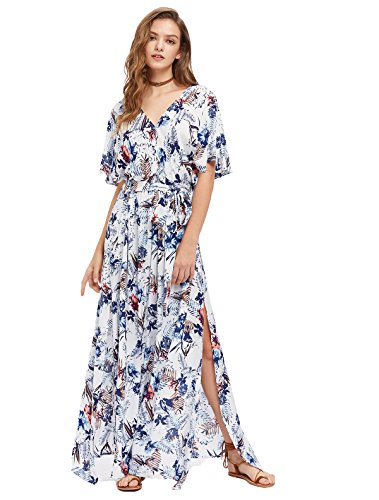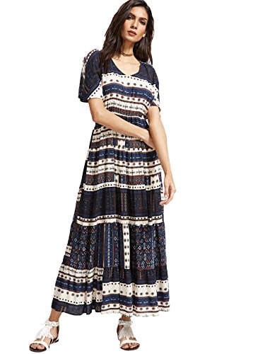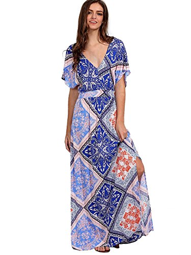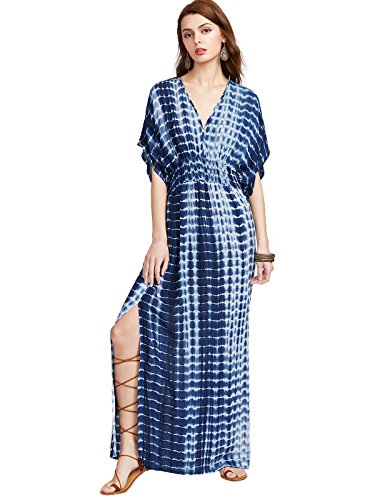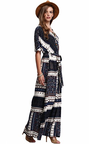 FEATURE: Ethnic Print, Deep V Neck, Short Sleeve, Loose Fit, Split with Belt. There are only half of the waist flexible, recommended to choose 1-2 size up, can be better to wrap the big breasts.