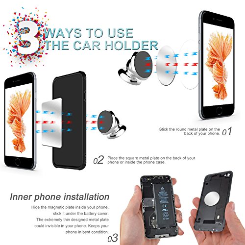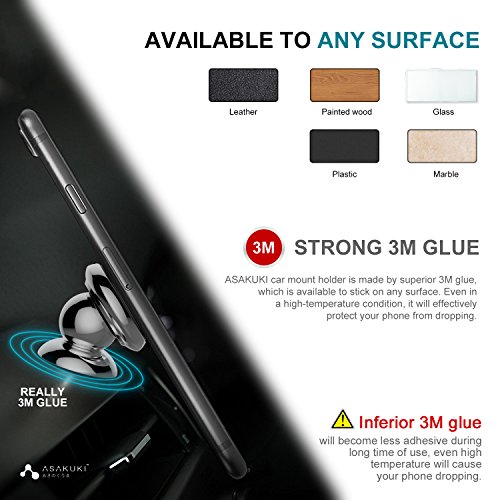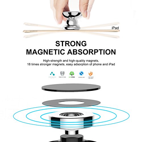 -. Feature : SAFE DRIVING WITH YOUR CELL PHONE AT HAND! Set off on your road trip in top safety, with your cell phone firmly attached to the air vent with premium ASAKUKI phone car mount. The strong NEODYMIUM MAGNET provides solid grip to your smart phone or tablet, while the sturdy RUBBER BASE makes a cradle-less construction that locks the device with just a simple touch. / THE BEST UNIVERSAL PHONE CAR MOUNT: This magnetic holder is more than a mobile phone car holder: use it as a kickstand to hold your GPS or tablet in any car, truck, boat or motorcycle! All you need to do is stick the adhesive metallic disk to the back of your iPhone , Galaxy, H TC , Xperia, Nokia , LG , Nexus or Pixel and place the phone over the magnetic car phone holder. / WHERE STYLE MEETS CONVENIENCE: Eye-catching and stylish due to its trendy design, ULTRA functional with the FULL 360 degrees rotation feature and FIRMLY ATTACHED to the car air vent, this high-end phone holder is a MUST-HAVE for all drivers, a durable mobile car stand that will complement the fashionable style of your vehicle! / INSTALLATION WITHIN SECONDS: No tools are needed to install your new magnetic holder! Just push it onto the air vent and place the device onto the circular magnetic mount! The ULTRA POTENT magnet will ensure maximum security for your cell phone, sticking it firmly on your car vent and safeguarding it from accidental drops in red terrain or abrupt turns. / A THOUGHTFUL GIFTING IDEA: Treat your spouse, kid, best friend or co-worker to the new generation of magnetic phone car mounts, to make their driving experience SAFER and MOST CONVENIENT! Offer ASAKUKI magnetic cell phone holder to professional or not drivers on all occasions and put a wide smile on their face!