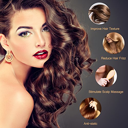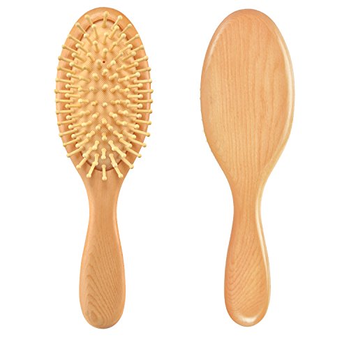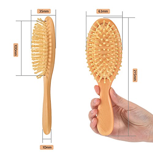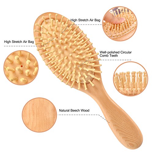 FESHFEN Natural Wooden Pinus Sylvestryis Hair Brush Scalp Massage Hair Brush for Women Anti-static Detangling Oval Air Cushion Comb