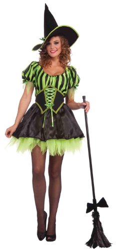 -. Binding : Apparel -. Brand : Forum Novelties -. ClothingSize : One Size Fits Most -. Color : green -. Department : womens -. Feature : Short green and black costume dress with green netting underskirt / Includes classic witch hat in black with green accent / Women's standard fits 34 to 38-inch chest, 26 to 32-inch waist, and 35 to 41-inch hips / Accessories available separately / Made by Forum Novelties, a leader in costumes and novelty products for more than 30 years -. Genre : Classic -. IsAdultProduct : 0 -. Label : Forum Novelties Costumes -. Manufacturer : Forum Novelties Costumes -. MPN : 68393 -. PackageQuantity : 1 -. PartNumber : 68393 -. ProductGroup : Apparel -. ProductTypeName : ADULT_COSTUME -. Publisher : Forum Novelties Costumes -. Size : One Size Fits Most -. Studio : Forum Novelties Costumes -. Title : Forum Novelties Women's Emeralda The Witch Costume