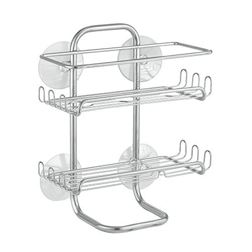 InterDesign Classico Suction Bathroom Caddy - Shower Storage Shelves for Shampoo, Conditioner and Soap - Silver
