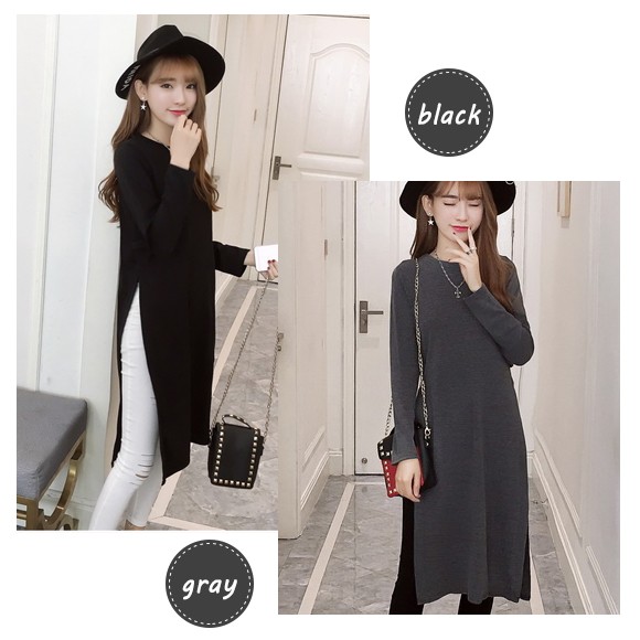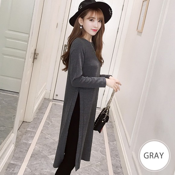 レディース用スリット入りカットソーです☆片側に大きく入ったスリットがポイントのおしゃれなデザインになっています!スキニーなどの細身のパンツ+ハットにスタッズ付きクラッチバッグを合わせて頂くとお洒落なモードスタイルに♪細身のデザインなので身体のラインもきれいに魅せてくれてタイトなデザインがお好きな方におすすめ☆カッコよく着こなしい方はブラック、きれい目に着こなしたい方にはグレーがおすすめのおしゃれカットソーです♪♪【サイズ詳細】バスト:約82-88cm 肩幅:約35cm 袖丈:約50cm 総丈;約98cm素材:綿、ポリエステル