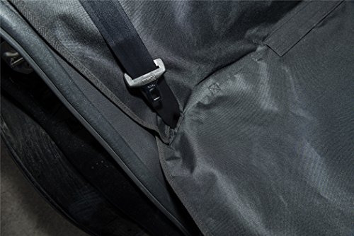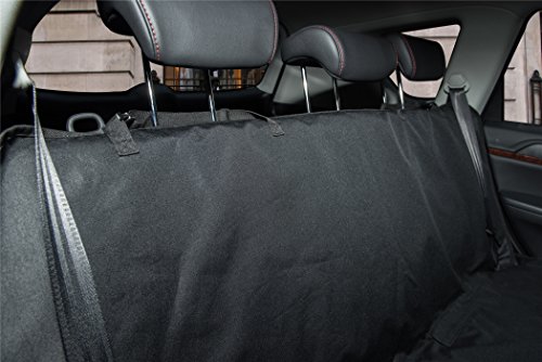 -. Feature : SIZE: One universal size design fits most Sedans, Mini, Trucks and SUVs. Measures approximately: 49 Inch L x 56 Inch W / FEATURE: Bench seat cover covers all of your back seat part. It keeps your car seat tidy from pets' shedding fur, muddy paw P.R.Ints, tears, scratches and other damages. It's also a wise choice that using this to convey children seats or objects. One year warranty / CONSTRUCTION: Only one piece construction. Bench style supplies big space makes your pets feel at home. Passenger can sit at the back seat next to your pet without taking off the cover / INSTALLATION: Easy on and off within few seconds. Distinguish the seat and back part, hang 2 adjustable straps on 2 back seat headrests respectively. Tuck the 2 anti-slip seat anchors into the seat and back's conjunction seam and wrap the 2 elastic bands around the corners / INSTRUCTION: Use vacuum machine to clear away sticky fur. Machine wash cold separately. Use mild detergent only. Gentle cycle. Reshape and dry flat. Do not bleach