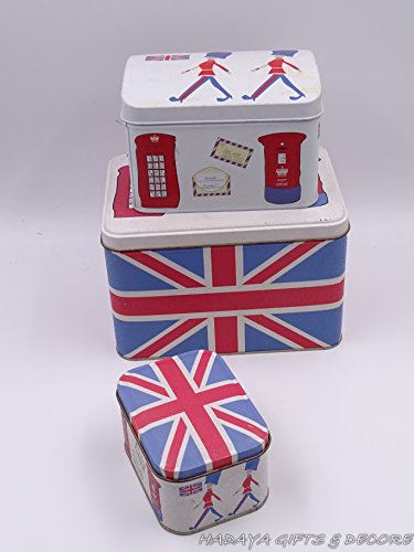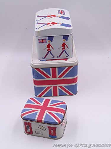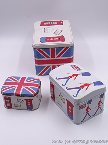 UK Themed multipurpose storage tins, shabby chic, Set of 3