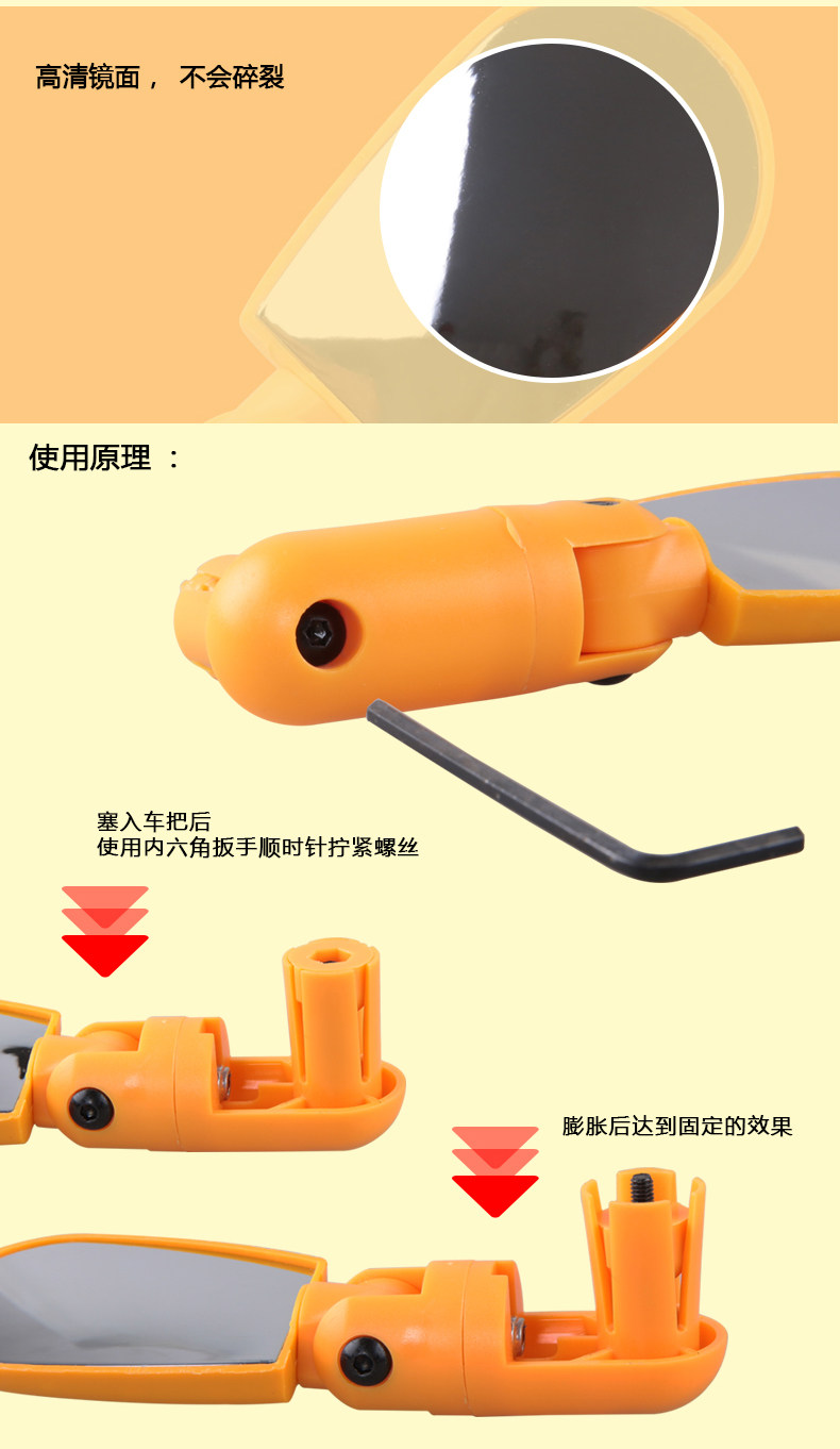 IDEATE可调自行车后视镜平面镜反光镜观后镜