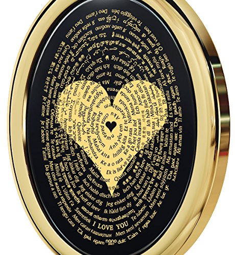 -. Feature : Black onyx I Love You necklace and black crystal heart drop earrings jewelry set. 0.4 inches, 10mm heart-shaped dangle earrings, are set in a pinch bail and measure 1.25 inches, 3.3cm, including the fish hooks. Please note; the heart earrings do not contain an inscription / Love necklace is inscribed in 120 different languages in 24k gold onto the onyx gemstone, 0.8x0.6 inches, 21x15mm and prong set into a cameo style frame measuring 0.65x1.15 inches, including the bail. Arriving on an 18 inches, 45cm, high quality, traditional Italian made rolo chain. / Nano jewelry is uniquely inscribed in 24k gold using innovative 'never seen before' technology, allowing us to place a labyrinth of miniature text over the surface of small stones, sometimes only visible with the help of a magnifying glass, included with your order. / The perfect unique surprise present for any special woman you wish to say I love u to, on any occasion. The romantic pendant arrives in a jewelry gift box, ready for gift giving or receiving. / Our fine love jewelry makes the perfect anniversary gift idea for her, so treat your wife on your first year, fifth, tenth or 50th wedding anniversary. Delight mom on Mother's Day, your girlfriend for Valentines Day, your daughter for Christmas or best friend on her birthday.