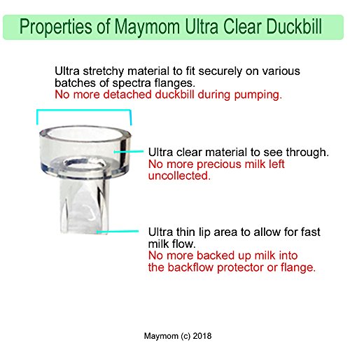 -. Feature : •Contains Ultra Clear Duckbill Valves. It is clear to see through so you can clean it better. / •Work with Spectra breastshields, Medela breastshields, and Maymom breastshields. Designed for these breastpumps: Spectra S1, S2, Spectra 9 Plus, Spectra Dew 350 breastpumps, and All Medela breastpumps, except Medela Freestyle, Swing Maxi, Sonata. See photo illustrations for compatible breastpumps. / •One duckbill valve can replace a Medela valve and a Medela membrane. No need to buy extra membranes. Mothers have fewer pump parts to wash, sterilize, and assemble. / •Built with high stretching material and it will last longer. Ultra thin lip areas to provide faster and better flow of milk, and reduce the milk backing up to the tubing. Compatibility guaranteed! / •Made from BPA free Materials, and can be sterilized in water steam or boiling water. Comply with EU and US FDA regulations for materials that contact food. Every batch is tested by independent labs for quality and safety.