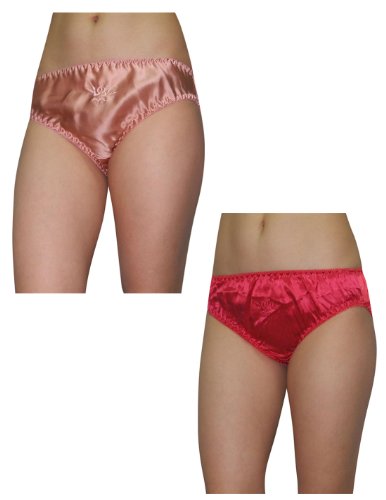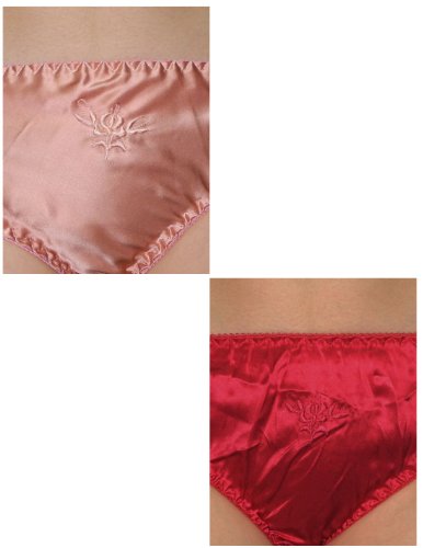 (Pack of 2) Womens Silk Stretch Brief Panties Underwear / Knickers S-M Light Coral & Red