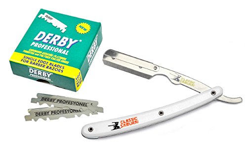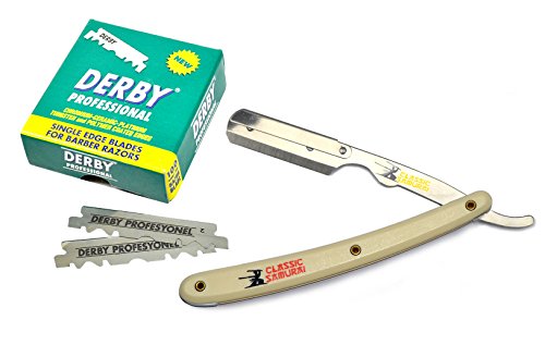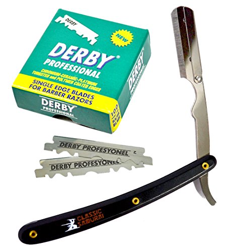 Classic Samurai Professional straight edge barber razor is made from genuine surgical grade stainless steel! Perfect for Barbershop and Personal Usage. Rounded exposure at the end of the blade compartment helps to minimize cuts.
