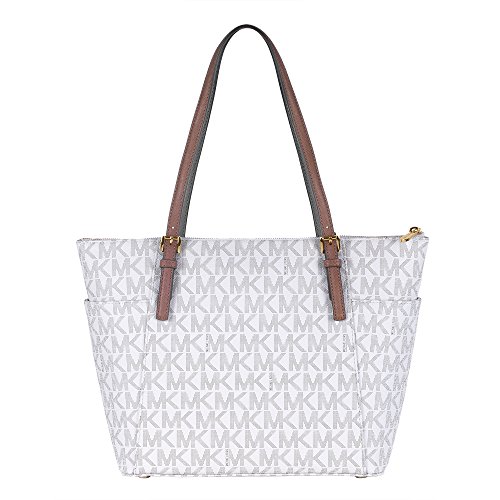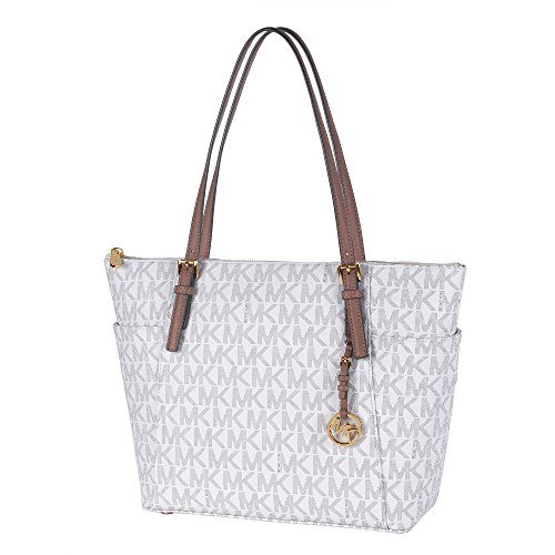 Michael Kors Jet Set Item Large East West Signature Top Zip PVC Tote