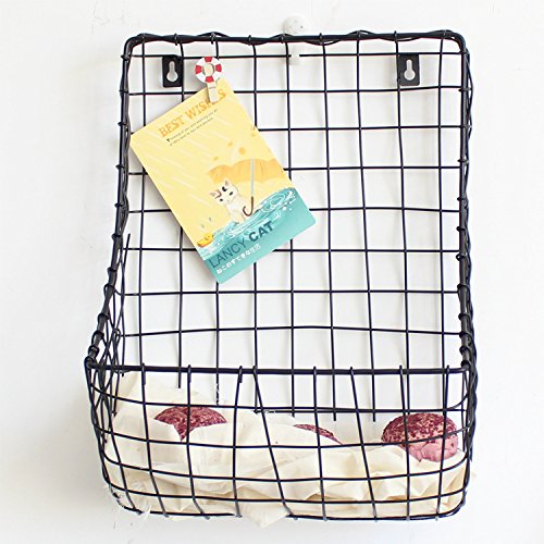 Studio : Candyqueen Publisher : Candyqueen Binding : Kitchen Product Description This is a mondern and elegant hanging wall metal basket storage, The open design gives you a modern feel and allows you to see what you have stored in the basket for easy access. Perfect for holding magazines, books, bathroom towels, cans and boxes of food and fresh fruits and vegetables. An industrial metal wire basket that provides a stylish and attractive way to organize your entryway, pantry, garage, bathroom or office space. Can be mounted on any wall (hardware included) or simply set on a table or shelf. Also folds flat for easy storage transport. Creative and practical metal storage, Organize and tidy up your kitchen countertop and cabinets, you can easily store your spices. Perfect for storing and displaying a variety of household, office or retail items. Great for decorating, you can beautifully showcase your favorite collection on the wall. Product information: Material: Iron. Color: Black. Size: 10.62" x 6.88" x 14.96". Package: 1Pcs. All of us hope you can have a good shopping. 0
