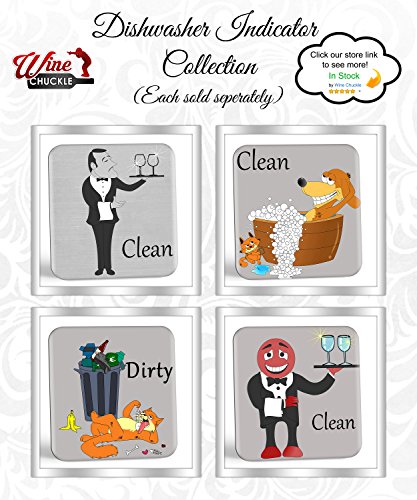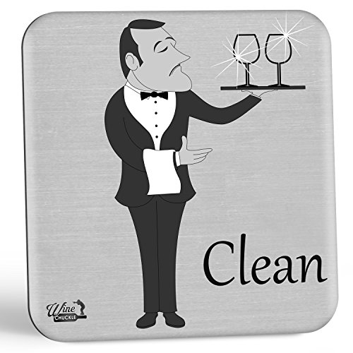 Wine Chuckle Dish Butler Cute Dishwasher Magnet Indicator - Clean-Dirty Dishwasher Indicator Sign Magnet - 2 Different Classy Fun Sides to Eliminate Those Questionable Re-Washes