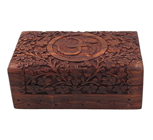 KayJayStyles Hand Carved OM Wooden Storage Box (Large, Om)