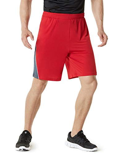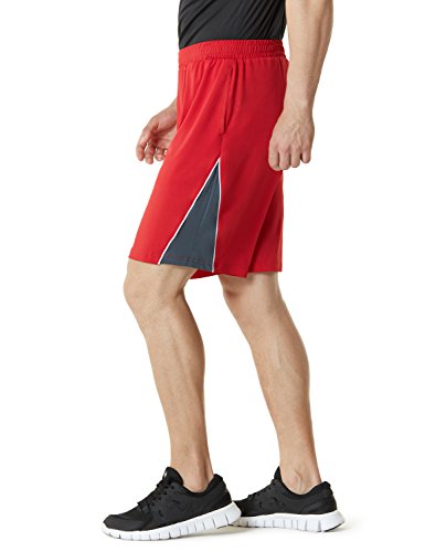 TM-MBS03-RED_Large Telsa Men's Athletic Training Shorts Active HyperDri III w Pockets MBS03