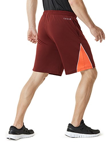 TM-MBS03-RED_2X-Large Telsa Men's Athletic Training Shorts Active HyperDri III w Pockets MBS03