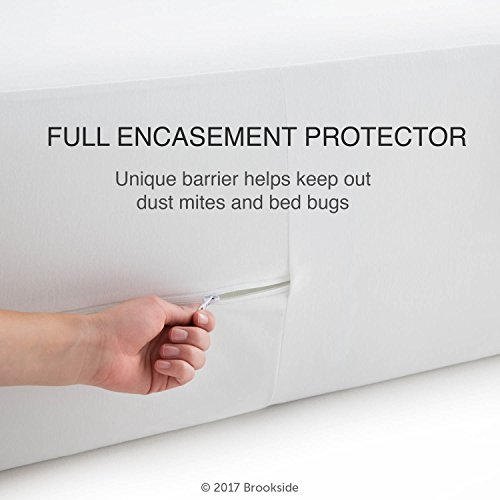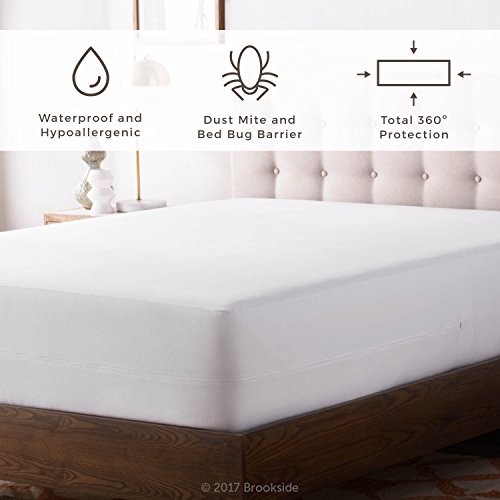 -. Brand : Brookside -. Feature : Keep your mattress fully protected from messes with our 360-degree waterproof barrier / No bugs allowed; specially designed zipper flap helps keep dust mites and bed bugs out / Extra-strength bound seams protect edges and corners; fully-lined elastic for smooth fit / Fits mattresses up to 18 inches thick; thin design will not change feel of mattress / TENCEL Jersey blend is luxuriously soft and very quiet; 10-year warranty -. Label : BROOKSIDE -. Manufacturer : BROOKSIDE -. Model : BSTJEPPARENT -. MPN : BSTJEPPARENT -. PartNumber : BSTJEPPARENT -. ProductGroup : Home -. ProductTypeName : HOME_BED_AND_BATH -. Publisher : BROOKSIDE -. Studio : BROOKSIDE -. Title : BROOKSIDE TENCEL Jersey Encasement Mattress Protector - Repels Liquids, Allergens, Dust Mites, and Bed Bugs - Reinforced Zipper and Seams - Hypoallergenic - 10 Year Warranty -. Warranty : 10-year warranty guards against manufacturer defect.