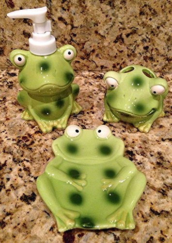 Children's Frog/Toad Bathroom Decor Accessory Set - 3 Piece Bundle Includes: Lotion Dispenser, Soap Dish & Toothbrush Holder!