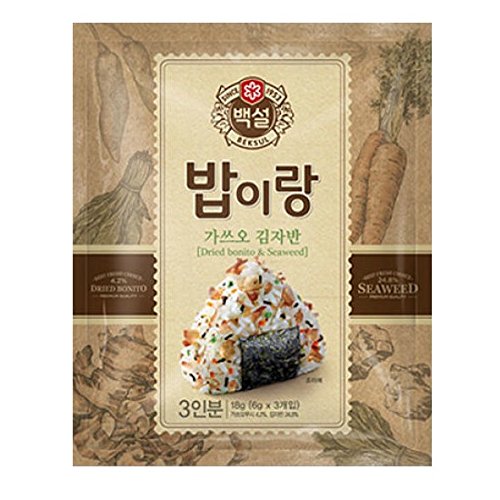 -. Binding : Misc. -. Brand : CJ -. EAN : 4933283180441 -. Feature : CJ Beksul Rice Seasoning Dried Bonito and Seaweed Mix 18g 5pcs Bundle SET Rice Seasoning Mix / Korean food / How to cook 1. Prepare a bowl of rice and a single package of this. 2. Sprinkle the seasonings in hot rice and mix well. 3. You can make rice balls by using your hands or tool. / Use-by Date: up to 6 months from manufacturing / Precautions 1. Please keep it sealed when you store the remained food. 2. Avoid direct sunlight and keep it dry and cool place. 3. Packing material cutting surface is sharp, so be careful when opening and using. -. Label : CJ -. Manufacturer : CJ -. PackageQuantity : 5 -. ProductGroup : Grocery -. ProductTypeName : GROCERY -. Publisher : CJ -. Studio : CJ -. Title : [5packs] CJ Beksul Rice Seasoning Dried Bonito and Seaweed Mix 18g / Rice Seasoning Mix / Korean food