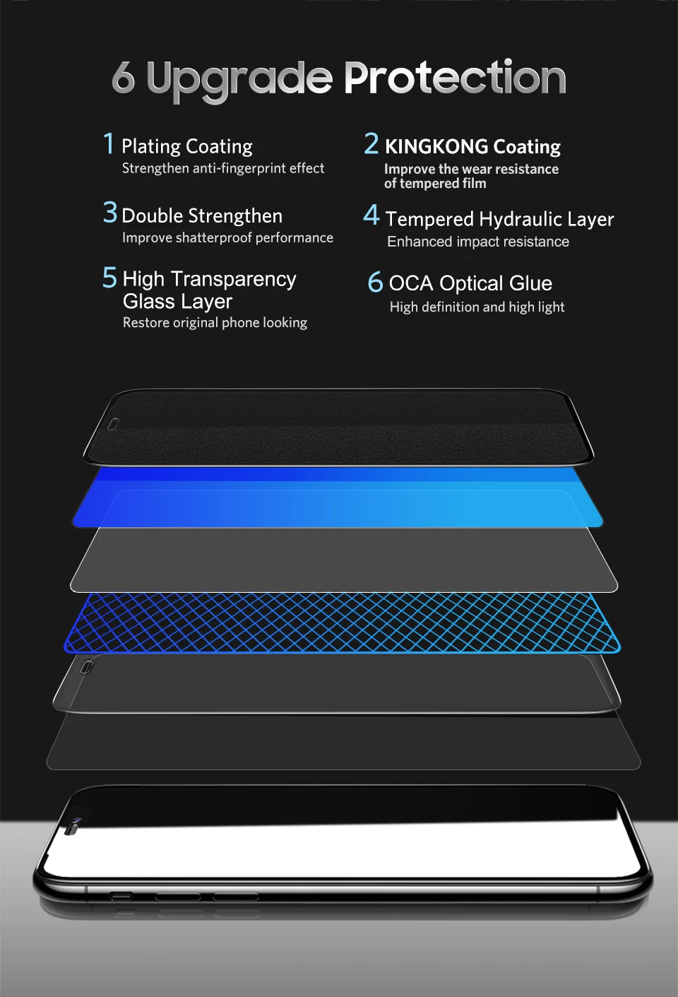 Function 1:Kingkong Tempered Glass for iPhone XS 5.8''/ XS Max 6.5''