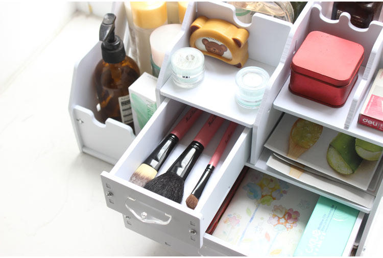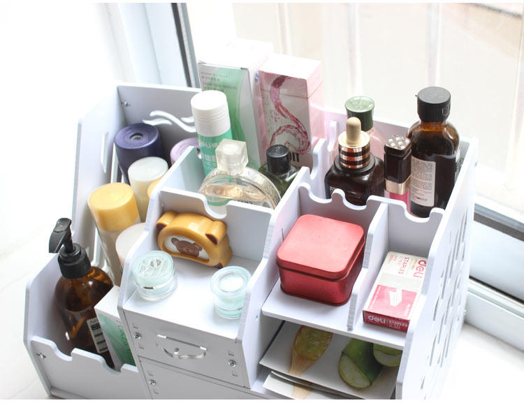 This DIY Home & Office Storage Box Makeup Organizer Stationery take your beauty organization to the next level. Sectioned compartments on top let you keep everything neatly sorted and within easy reach. A drawer beneath stores jewelry and smaller stuffs, arranging them in specially designed compartments for ultimate efficiency.