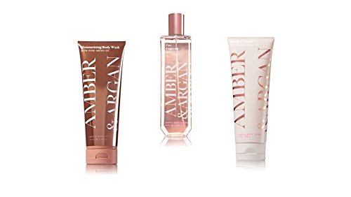 -. Feature : Amber & Argan - An indulgent blend of amber, argan, quince & suede / 8 fl oz - Fine Fragrance Mist - Our carefully crafted bottle and sophisticated pump delivers great coverage while conditioning aloe mist nourishes skin for the lightest, most refreshing way to fragrance! / 8 oz - Body Cream - Inspired by Mediterranean beauty rituals & infused with 100% pure argan oil from Morocco, our Body Cream provides 24 hours of nourishing moisture. With soothing Aloe Butter, pampering Cocoa Butter and more Shea than ever before, our non-greasy formula melts into skin to provide beautiful fragrance and all day, all night hydration. / 10 fl oz - Moisturizing Body Wash - With instant moisture after every shower, our incredibly creamy body wash is made with conditioning shea butter, cocoa butter & aloe butter to gently cleanse with luxurious lather to leave skin feeling nourished and pampered.