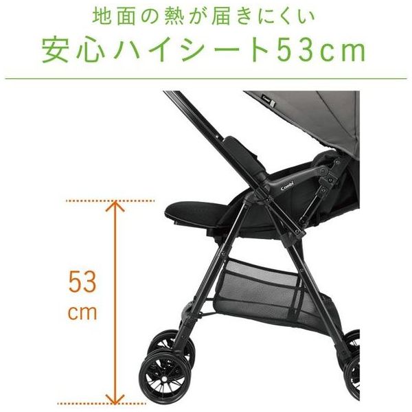 ●地面に届きにくい安心ハイシート53cm:赤ちゃんの乗せ降ろしもラクラクで、地面近くの熱やほこりからデリケートな赤ちゃんを遠ざけます。