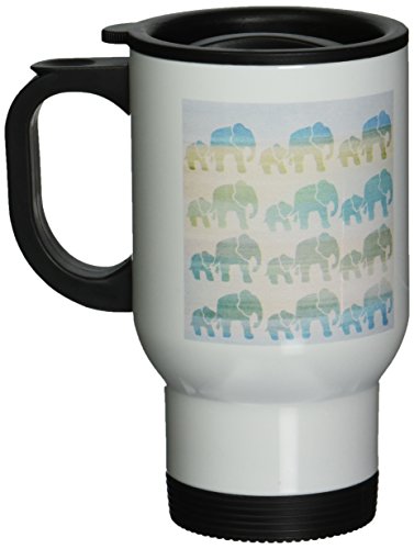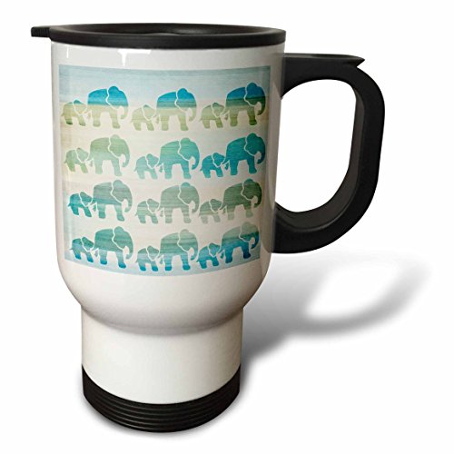 3dRose tm_152076_1 Aqua Mom and Baby Elephants Animals Stainless Steel Travel Mug, 14-Ounce