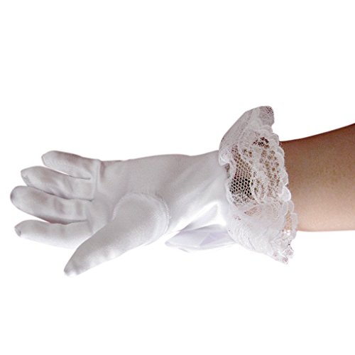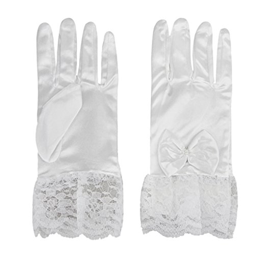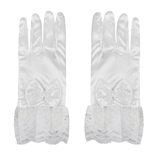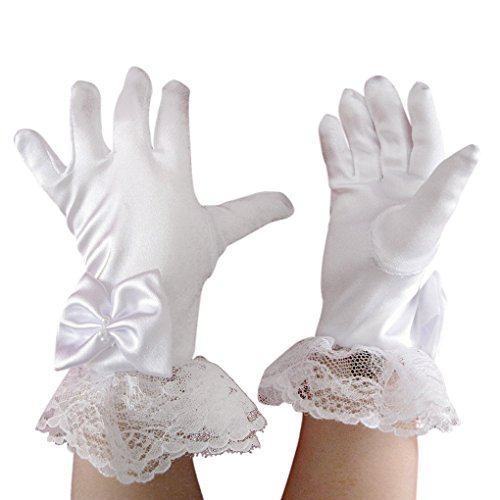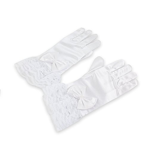 Flower Girl White Bowknot Lace Satin First Holy Communion Evening Wedding Gloves 5-12Yrs