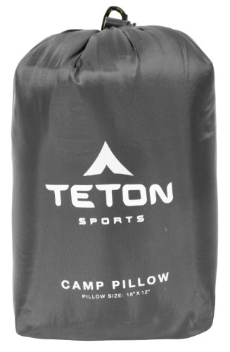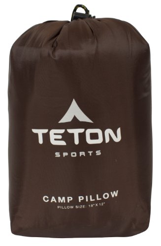 Studio : TETON Sports Publisher : TETON Sports Binding : Sports Product Description For those times you don't want to lug along a full-size pillow, the TETON Sports Camp Pillow is the next best choice. Soft flannel pillow case feels like a luxury bed sheet and envelope design means cover stays on all night long. If you don't want to take along the case, pillow itself is made of a brushed hi-count fabric that will feel nice against your skin. Stuffed with SuperLoft Elite 4-channel fill, which does not mean the pillow has uncomfortable channels beneath your head. Instead, it just means the fill stays in place rather than bunching up in one spot. Easily fits into the 9.5"H x 6.5"W x 5"D stuff sack or can be packed flat in your pack or squished into a corner. Store pillow out of stuff sack for maximum loft. Same construction as highly-rated TETON Sports sleeping bags. Available in four colors. You could pay 5 for one of those inflatable pillows that will start leaking after the second night and leave a red welt on your face, or you could spring for a few more dollars and get this pillow that will last for years. Like all TETON Sports products, it has a lifetime warranty. 0