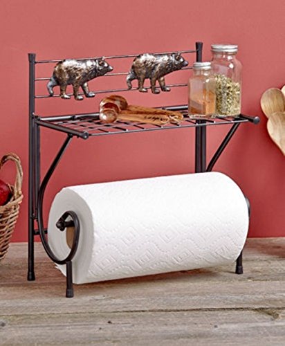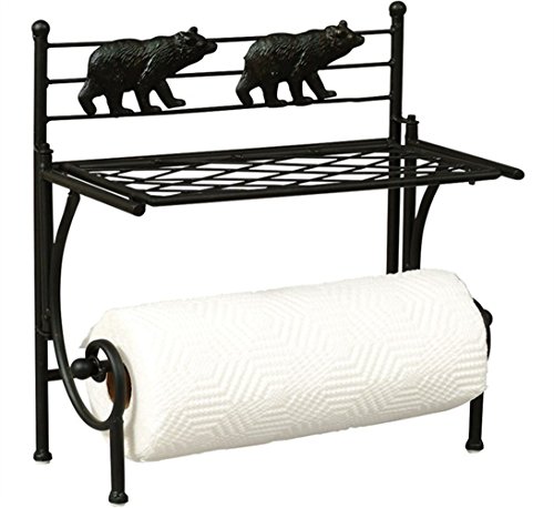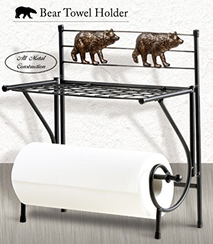 Decorative Paper Towel Holder Wall Mount - Bear Design Black Metal Paper Towel Holder With Shelf