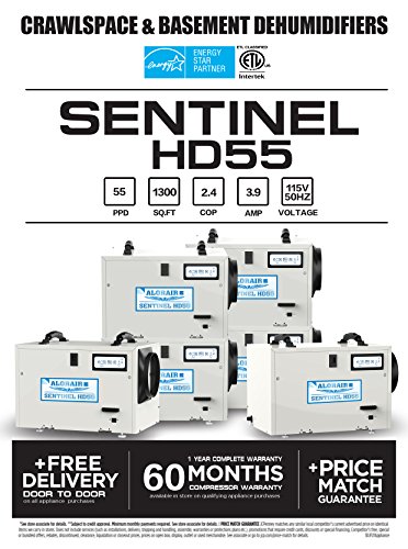 Sentinel HD55 Dehumidifier has CE, C-ETL and is Energy Star approved. With patent for invention protected, the unit is in the top list of energy efficient products. This unit has a wide range of applications including crawlspaces, basements, warehouses, offices, factories, shops ,apartments, storage areas, restaurants, bars and museums where occur corrosion,mold growth. It can also help to resolve damage to inventory and building maintenance due to dampness.Sentinel HD55 was introduced to provide one-stop service for your humidity problem, The preassembly, external condensate connection point and side sliding filter, make the installation process simple.