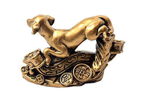 2018 Chinese year of dog Horoscope Chinese Zodiac Handmade Golden Resin Running Dog With Coin Collectible statue Figurine Sculpture