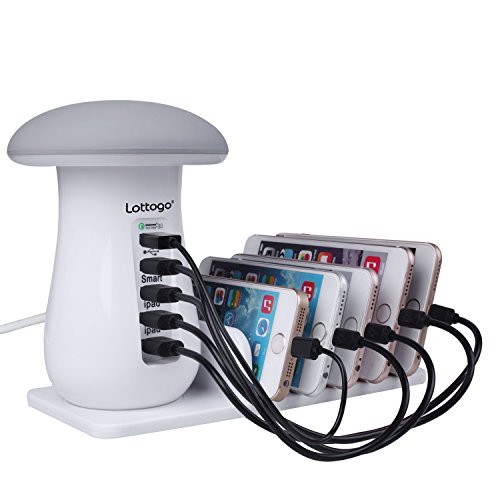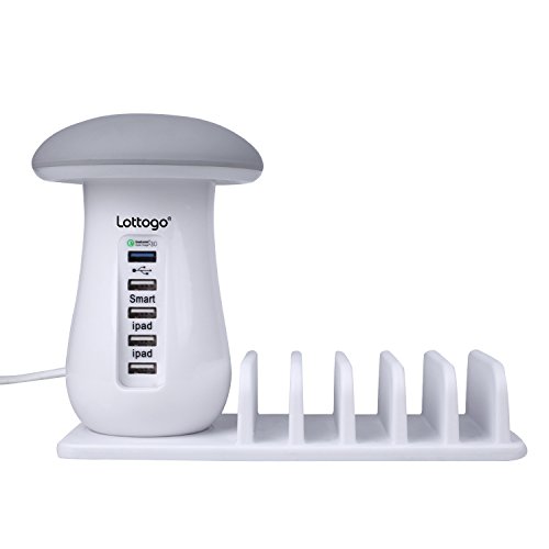 Lottogo Quick Charge 3.0 USB Charging Station with Mushroom LED Desk Lamp Fast Charging for Samsung Galaxy S7 iPhone 7/6 Plus iPad iPod Google Pixel (white)