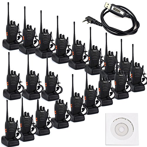 -. Binding : Electronics -. Brand : Retevis -. Color : Black -. EAN : 0696744171276 -. Feature : Ergonomic design: adopts the latest technology to make the radio with relatively thin body; Picked up more comfortable / 1500mAh Li-ion battery and Power saving function:usually it takes 2-4 hours to recharge the battery and support continued use about 8-9 hours / Clear voice prompt could remind you whenever you turn on the radio with the current channel number, wherever you stop when selecting channels / Operation is simple and reliable:1 knob for on/off/volume control, the other for channel switch; just communicate when they in the same channel / 1 year warranty and 30 days no reason to return; No matter any reason, within 30 days you can apply for a return (Including the radio accessories) -. Label : Retevis -. Manufacturer : Retevis -. Model : Retevis H777 -. PackageQuantity : 1 -. ProductGroup : CE -. ProductTypeName : TWO_WAY_RADIO -. Publisher : Retevis -. Studio : Retevis -. Title : Retevis H-777 2 Way Radio UHF 400-470MHz 3W 16CH VOX with Original Headset,Belt Clip and more (20 Pack) and USB Programming Cable -. UPC : 696744121400