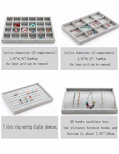 Multi-Sectional: Features 8 removable dividers to separate the jewelry tray into 24 equal sectional compartments. The compartment size and compartment number can be adjusted by removing or adding the divider to suite your storage needs.