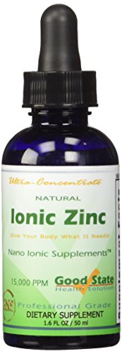 -. Binding : Health and Beauty -. Brand : Good State -. EAN : 0857515003589 -. Feature : Absorbs Much better than Pills! / Comes with Dropper! Small size - Very convenient for travel / Only 10 Drops equals 15 mg of Ionic Zinc - 100 Total Servings / Professional Grade - Natural Zinc - Gluten-Free! / Easy to Mix with Juice or Water. Can be taken Sublingual -. Label : Good State -. Manufacturer : Good State -. Model : 143 -. MPN : 143 -. NumberOfItems : 1 -. PackageQuantity : 1 -. PartNumber : 143 -. ProductGroup : Health and Beauty -. ProductTypeName : HEALTH_PERSONAL_CARE -. PublicationDate : 2014-10-02 -. Publisher : Good State -. Studio : Good State -. Title : Good State Liquid Ionic Zinc Ultra Concentrate Drops, 15 mg, 1.6 Fluid Ounce - 100 servings per bottle -. UPC : 857515003589