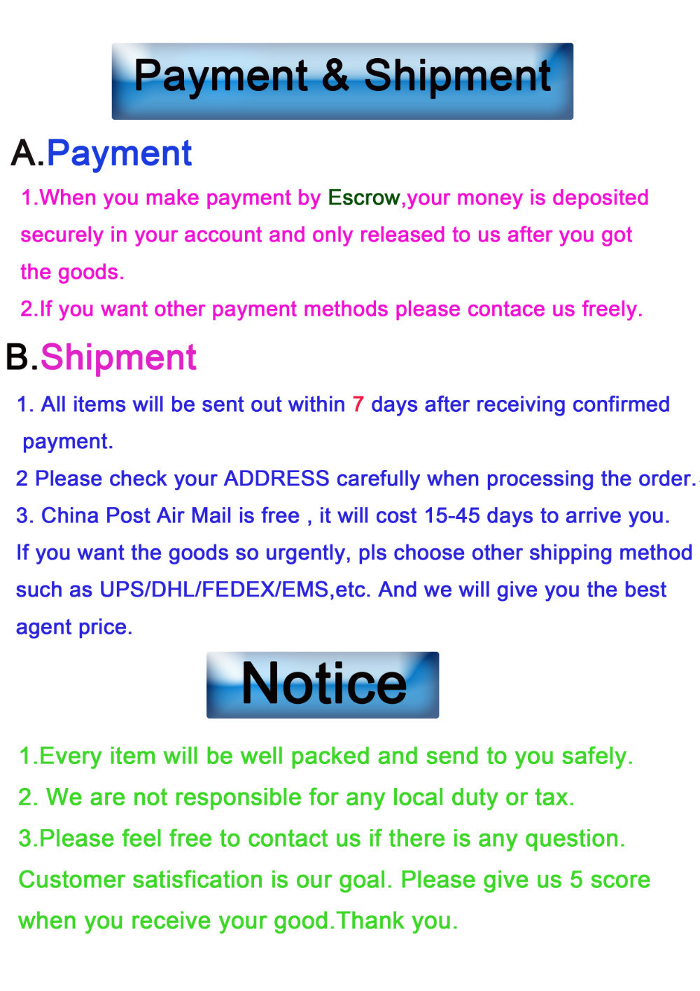 Notice:If you choose the product that the price is not the same in The product table,pls order without payment and I will change to the right one.Contact me by Trade manager always online.