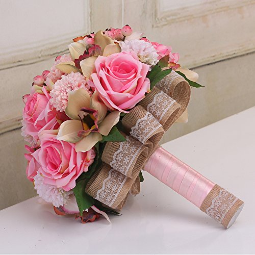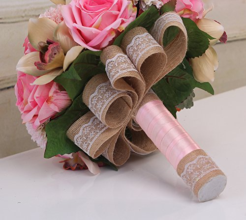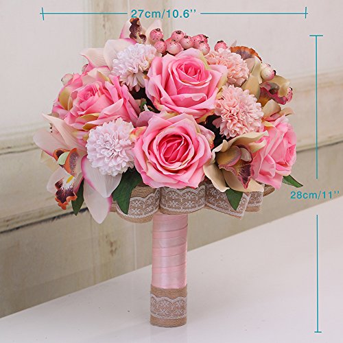 Wedding Bridal Luxury Silk Satin Artificial Bouquet Rose and Daisy Flower Silk Ribbons Handmade Throw or Flower girl 5#
