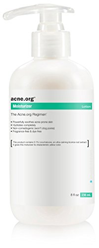 -. Feature : Step 3 of The Acne.org Regimen. This intensely hydrating, non-comedogenic, light feeling lotion eliminates dry skin and flakiness completely, while soothing acne-prone skin. / Generous 8 ounce size will last for 1-2 months on The Acne.org Regimen. / Goes on clear and absorbs quickly, leaving the skin feeling supple and balanced without leaving behind any residue. Fragrance-free and dye-free. / Contains an optimal dose of licochalcone, an ultra-calming licorice root extract which powerfully calms acne-prone skin. / Formulated by Acne.org founder Dan Kern.